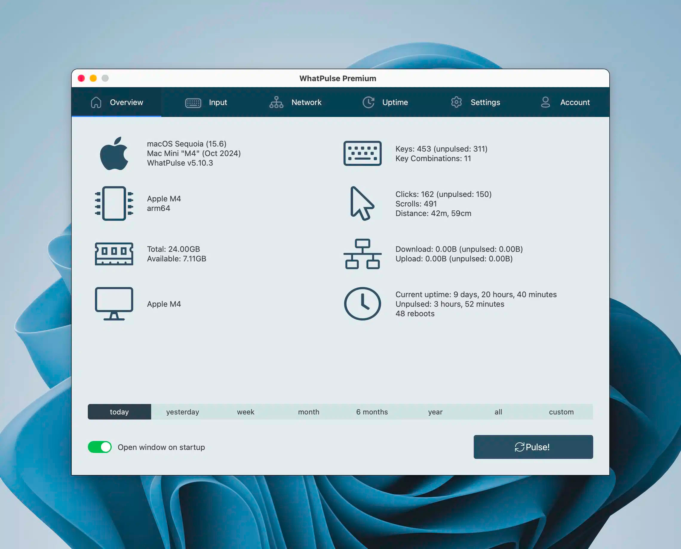 WhatPulse هو تطبيق متعدد المنصات يعمل على أنظمة Windows وmacOS وLinux، يهدف إلى تحليل سلوك المستخدم الرقمي وتقديم تقارير دقيقة حول أداءه وعاداته أثناء استخدام الحاسوب.