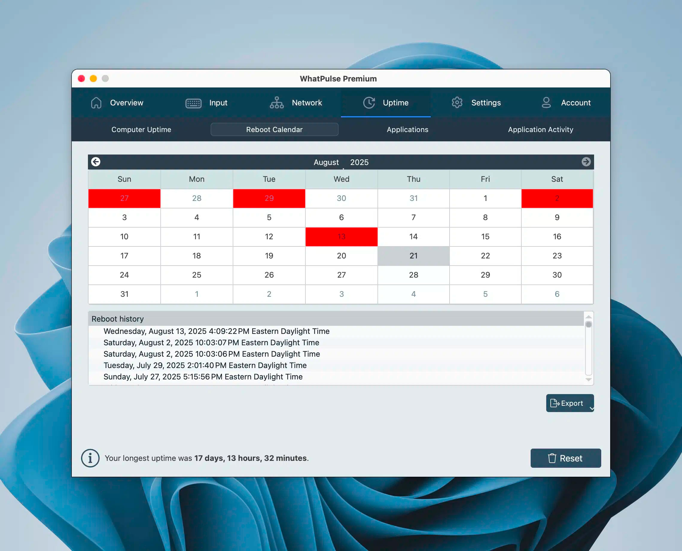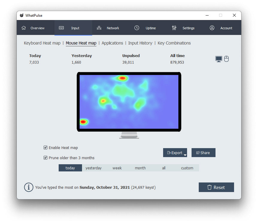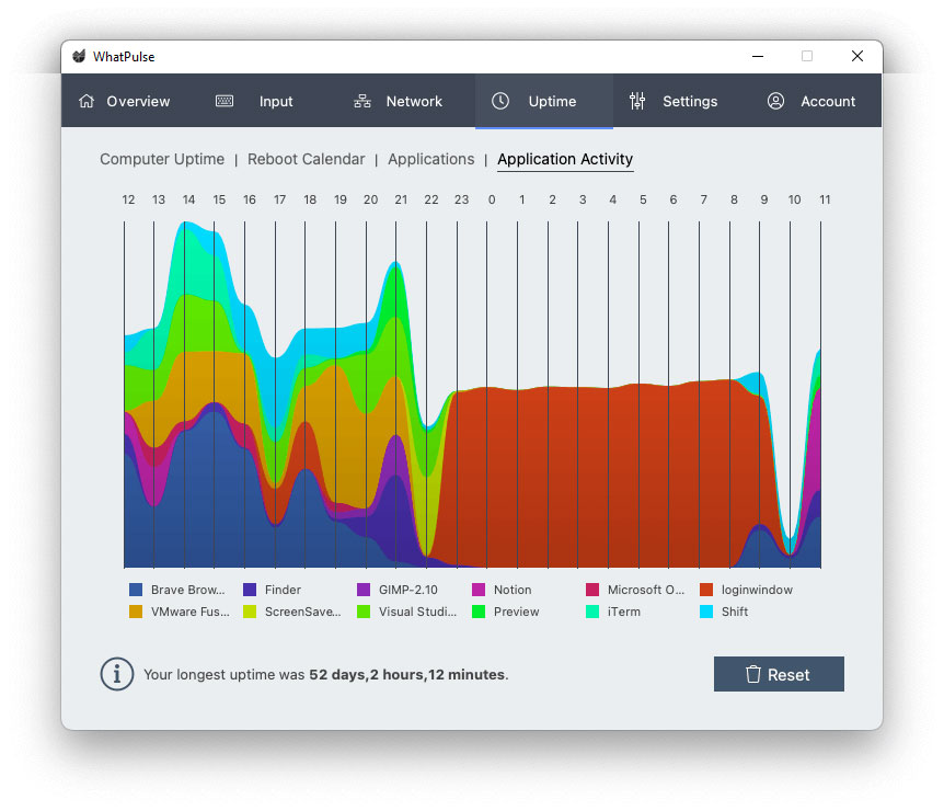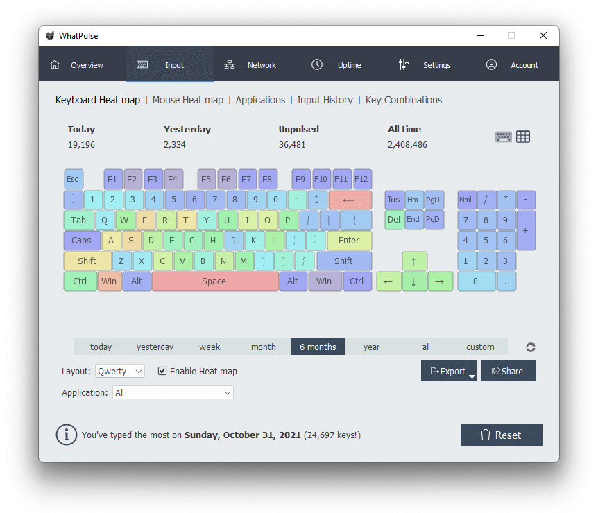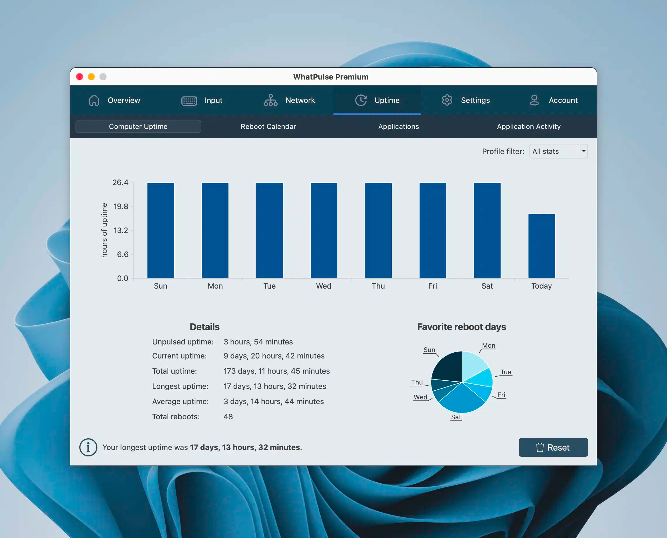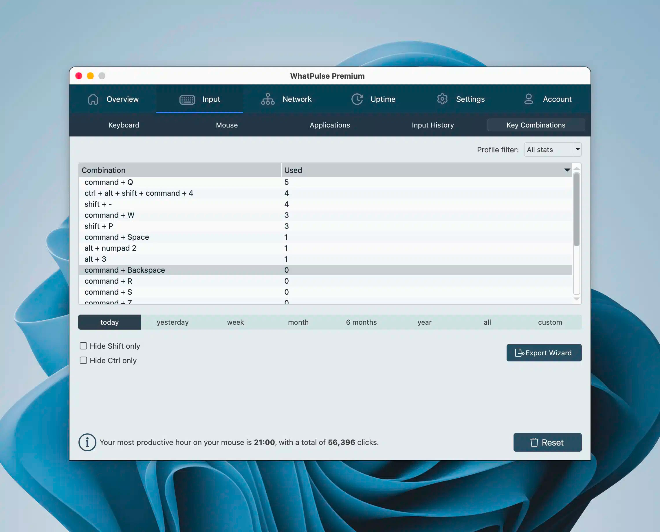 يقدّم WhatPulse مجموعة واسعة من أدوات التحليل والإحصاء، من أبرزها :