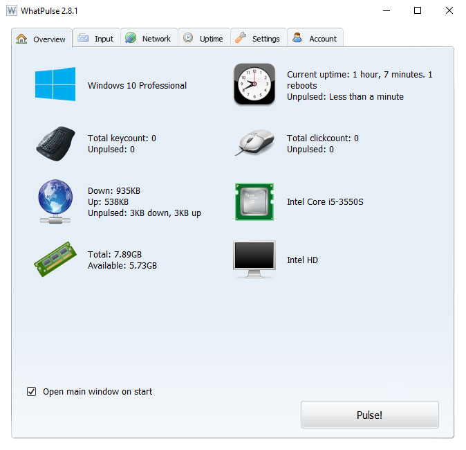 بعد تثبيت البرنامج وتشغيله، يبدأ WhatPulse بالعمل في الخلفية بهدوء، حيث يجمع البيانات بشكل مستمر أثناء استخدامك للجهاز لا يسجّل البرنامج محتوى ما تكتبه بل فقط عدد ضغطات المفاتيح والنقرات مما يحافظ على الخصوصية.